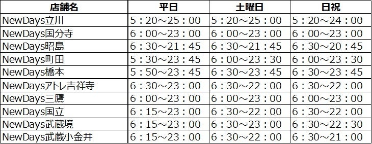 実施箇所 JR中央線・青梅線・横浜線内のNewDays10店舗(詳細は下記参照)