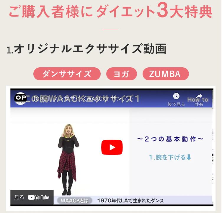 もご購入特典として無料プレゼントとすることでご購入者様が総合的な面からダイエットが成功出来るようにサービス提供を行っています。