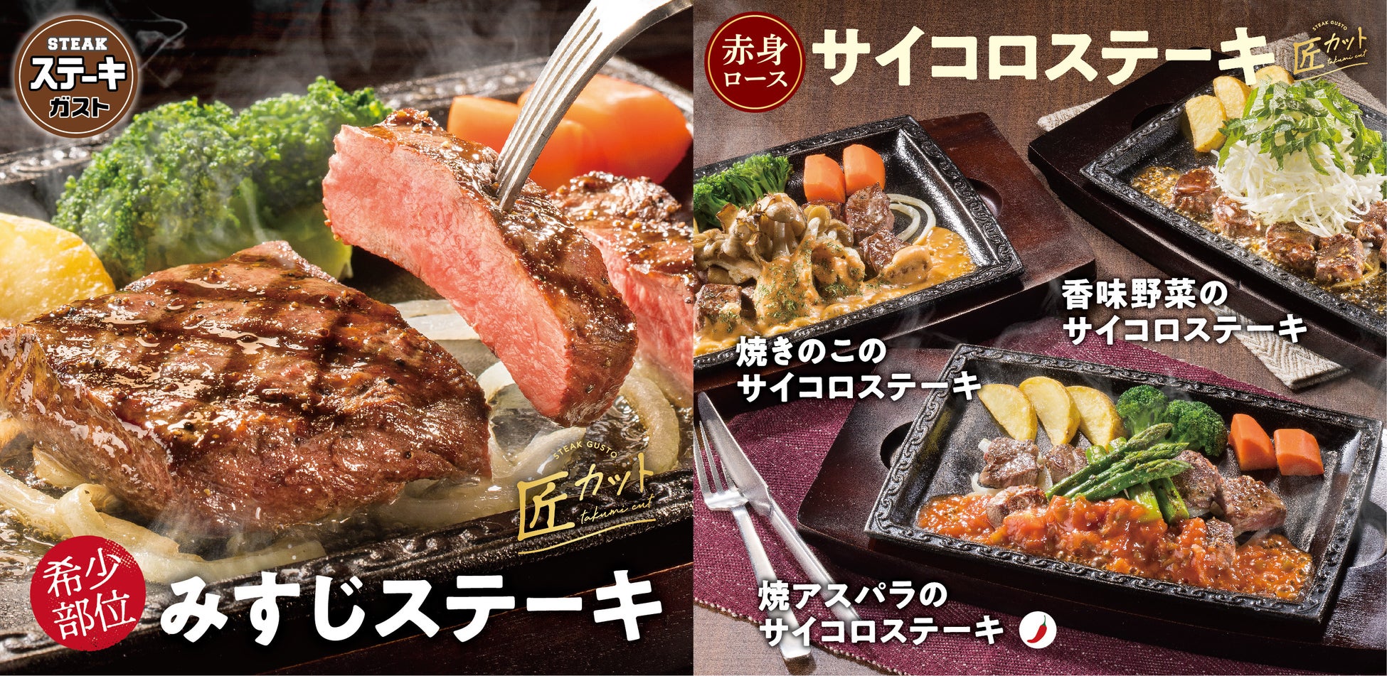 株式会社すかいらーくレストランツ(本社・東京都武蔵野市、代表取締役社長 大川原利明)が運営するステーキ・ハンバーグ専門店「ステーキガスト」では、2022年4月21日(木)より、製法と素材の追求をテーマに、“匠カット”ステーキメニューの拡大および合挽ハンバーグをリニューアルいたします。