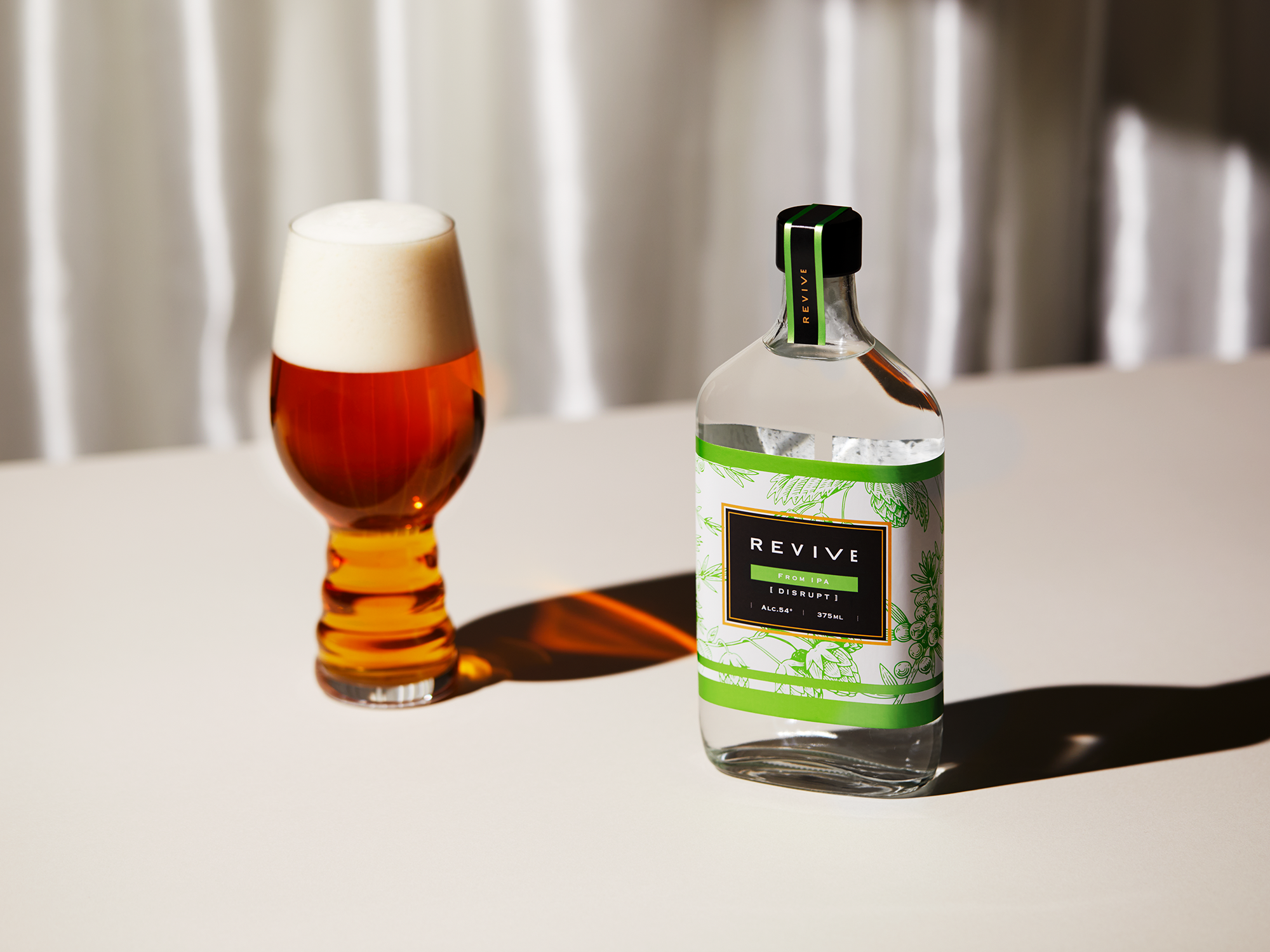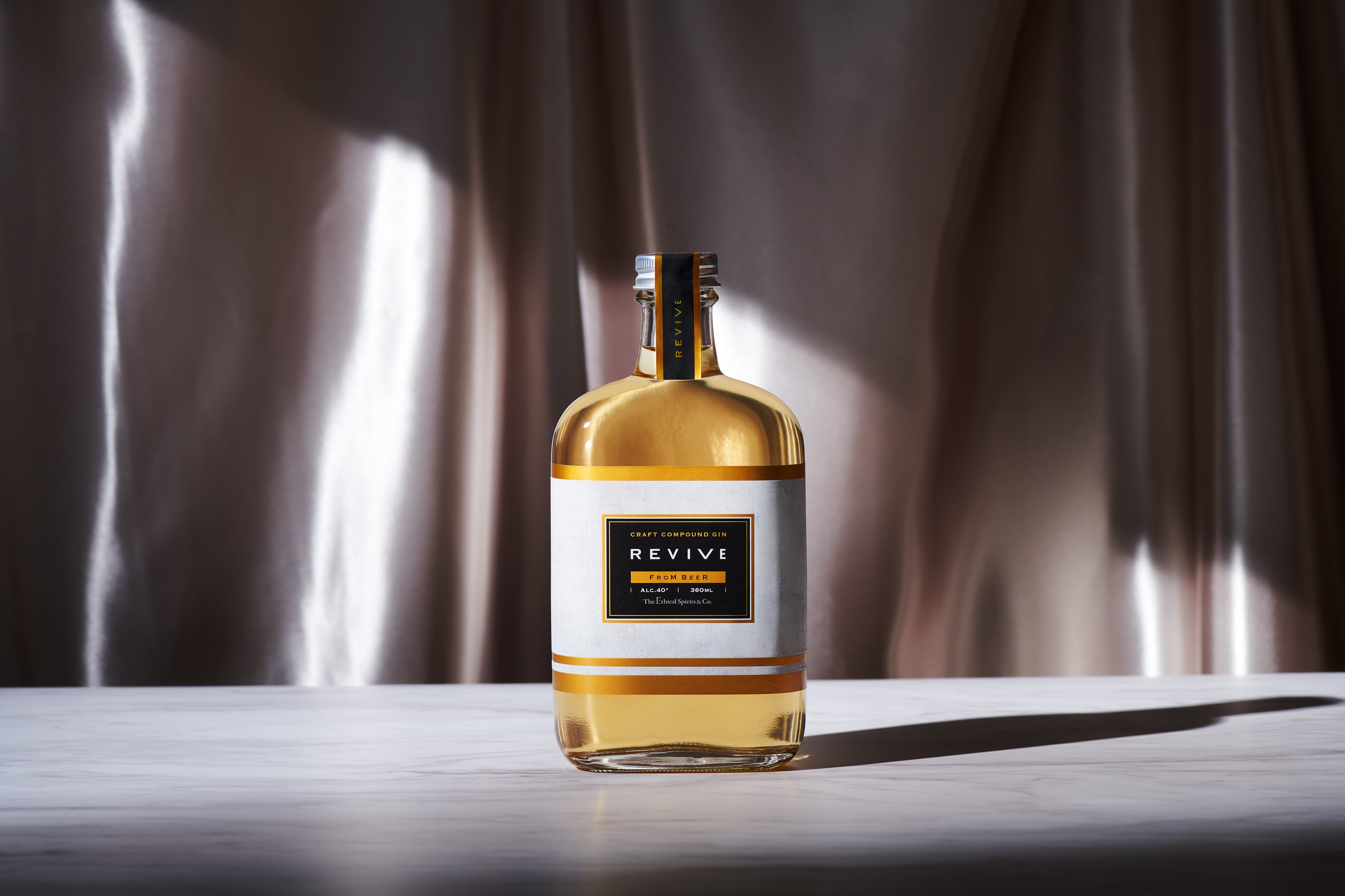 『REVIVE』は、 「バドワイザー」ブランドをグローバルで展開するアンハイザー・ブッシュ・インベブ ジャパン会社 (所在地:東京都渋谷区)と、老舗日本酒メーカー 月桂冠 の3社で共同で、2020年9月に数量限定で生産いたしました。新型コロナウイルス感染拡大直後、外食産業やビール市場は深刻な状況となりビール販売数量は大幅に落ち込みました。再生と循環をテーマに、通常は廃棄される「酒粕」をジンに再生する取り組みを行ってきた『エシカル・スピリッツ』は、この事態を受けビールを蒸留しジンに変える技術を月桂冠へ提供。また廃棄予定であった約8万杯分のバドワイザーの提供を受け、世界にも類を見ない漬け込み式のビールから生まれたジン『REVIVE』が誕生しました。