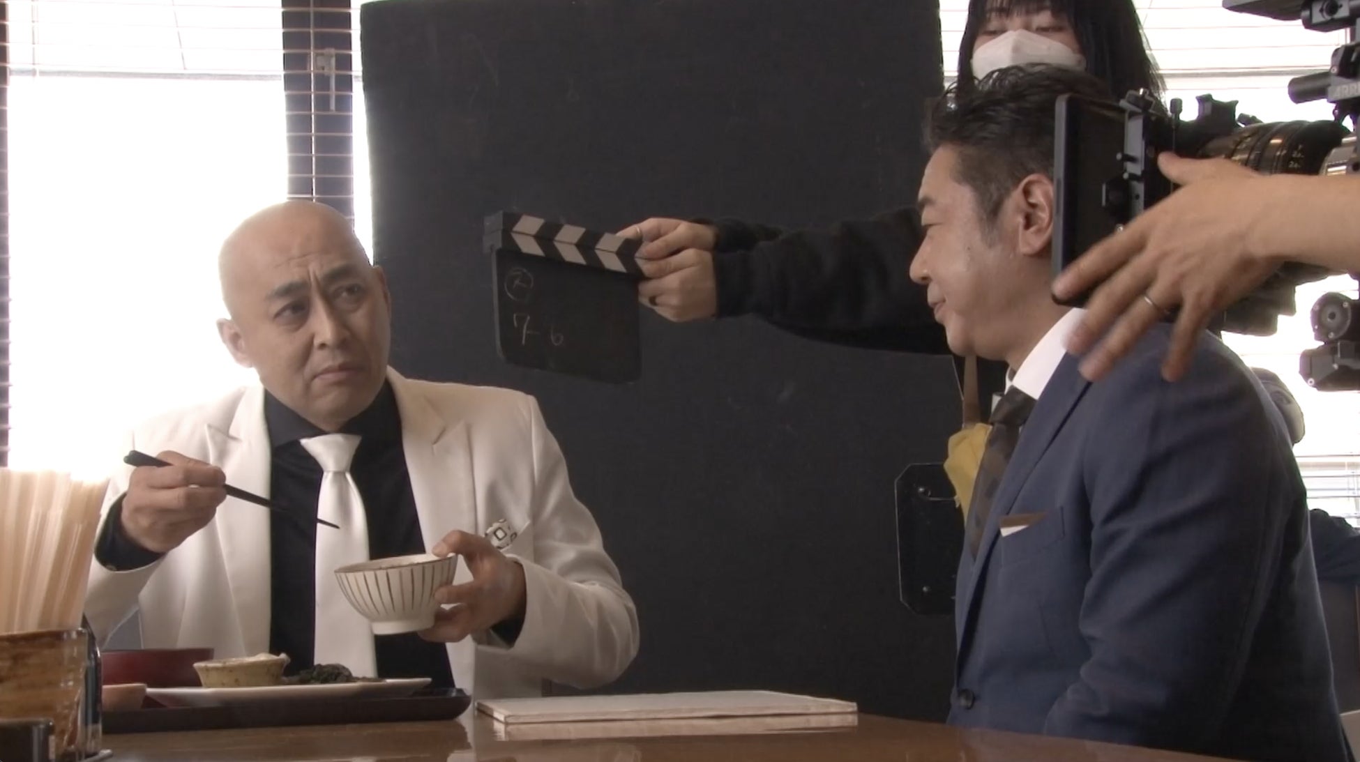 一方、長谷川さんはCM内で様々な顔芸にも挑戦。撮影中に繰り出すアドリブや顔芸で、現場はその都度笑いに包まれていました。お二人は撮影以外の場面でも、現場にあったメニューを真剣に読む姿やお弁当を美味しそうに食べている姿が印象的でした。