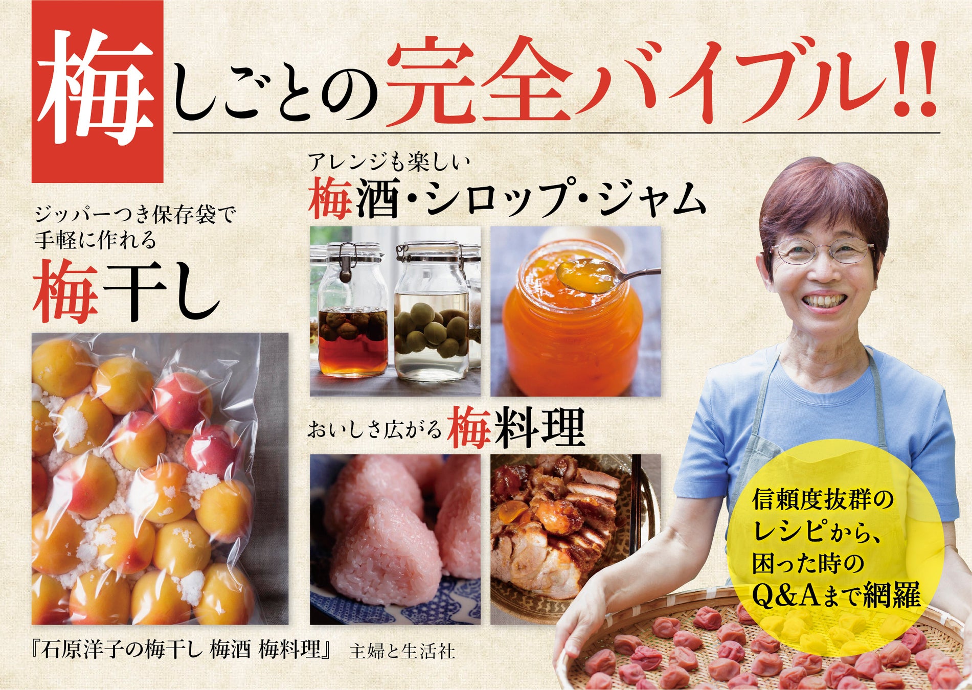 株式会社主婦と生活社は、新刊『石原洋子の梅干し 梅酒 梅料理』を4月22日(金)に発売しました。ジッパーつき保存袋で少量から作れる梅干し、減塩梅干し、はちみつ入り梅干し、小梅のカリカリ漬け、梅酒やシロップ、ジャム、コンポート、梅料理までを完全網羅した1冊です。