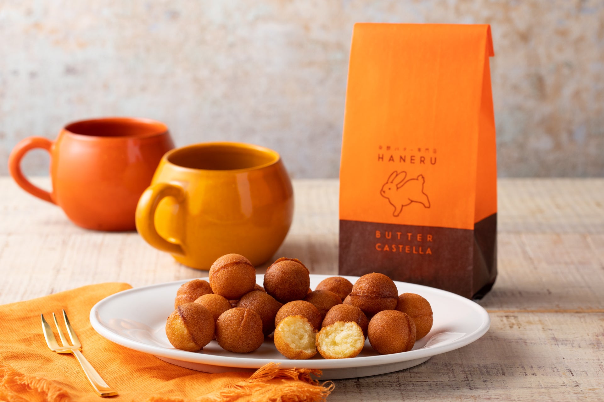 2020年に誕生したフランス産の高級発酵バターを使用したバタースイーツ店。看板商品は芳醇で濃厚なバターの香りとコクを楽しむ「バターカステラ」。うさぎが鉄板の上を飛び跳ねるような様子から「HANERU」と名づけました。バターの甘い香りに誘われてつい手がとまらなくなる美味しさです。