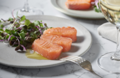 こんなサーモン食べたことない!レストランで出てくるようなサーモンのミキュイがおうちでも手軽にできちゃいます!キレイなサーモンピンクにしっとり食感。レモンとオリーブオイルでさっぱりも、わさび醤油で和風にも、お好みで。