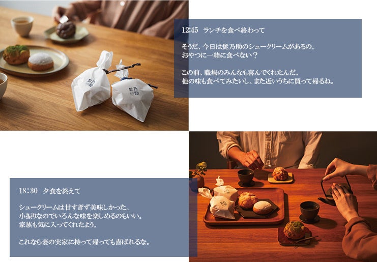 今回発売する髭乃助ことわざになぞらえた個性豊かなネーミングの新作シュークリームは、甘酸っぱいあんずの果肉とヨーグルトを合わせたクリームをもちもちの生地で包みこみ、初夏に似合う爽やかな味わいに仕上げた「あんず」 を使用した“あんずるより食うが美味し”、黒須きな粉が香ばしいクリームに、「わらび餅」のぷるぷるとした食感をあわせた“棚からわらび餅”の2種類。この2種類の新作シュークリームは「食べたら美味しい、だけど食べないとわからない。」髭乃助こだわりのシュー生地に包まれた見た目は、なんとも素朴でありながらも一口食べると広がる初夏の味わいが楽しめるシュークリームです。