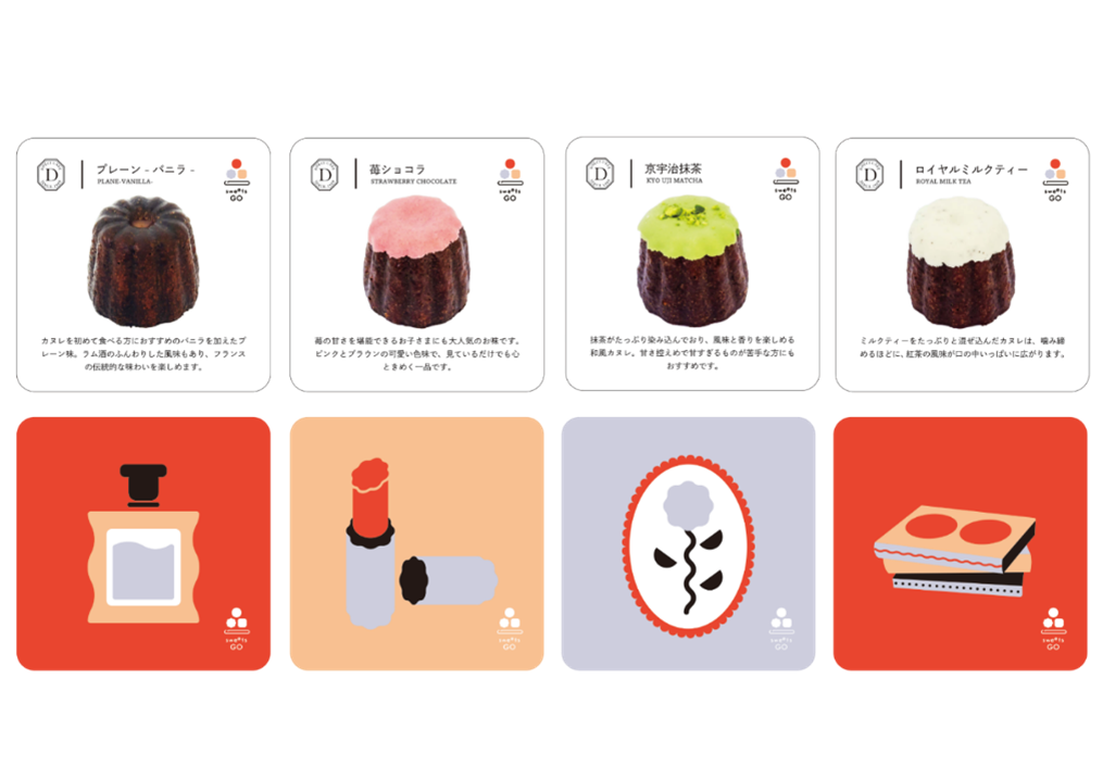 Sweets GOでは、厳選されたバターサンドやカヌレなどのスイーツそれぞれに「リップ」「ハイヒール」などのモチーフを設定。