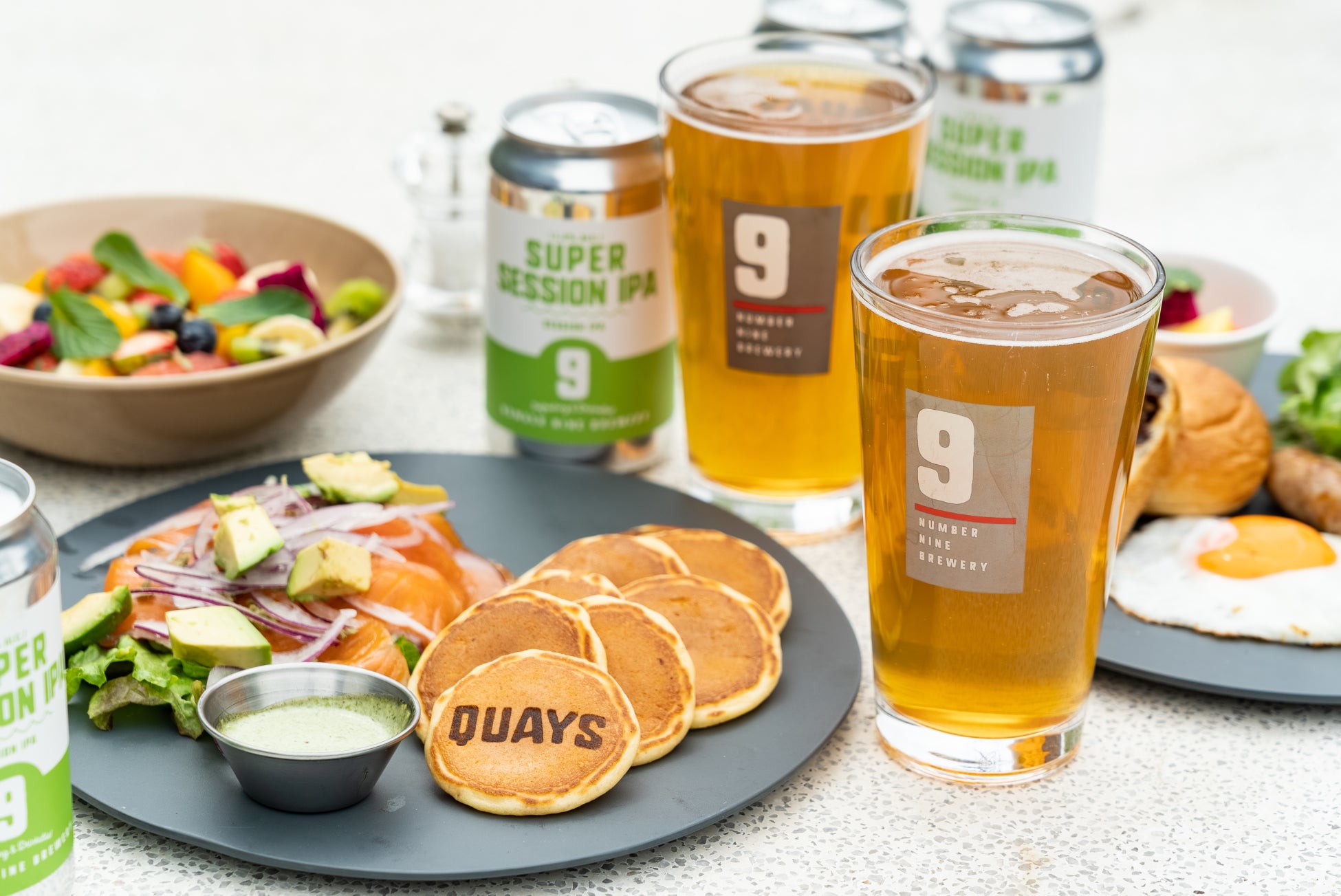 NUMBER NINE BREWERYを併設するQUAYS pacific grillでは、ゆったりとした時間を楽しむことができるゴールデンウイーク期間中(4月29日~5月8日)、通常は週末・祝日限定でご提供している朝食メニューを毎朝お楽しみいただけます。スモークサーモンサラダのパンケーキに、キャラメルバナナのフレンチトーストなど、バラエティ豊富な朝食メニューと一緒に是非お楽しみいただきたいのが「スーパーセッションIPA」。