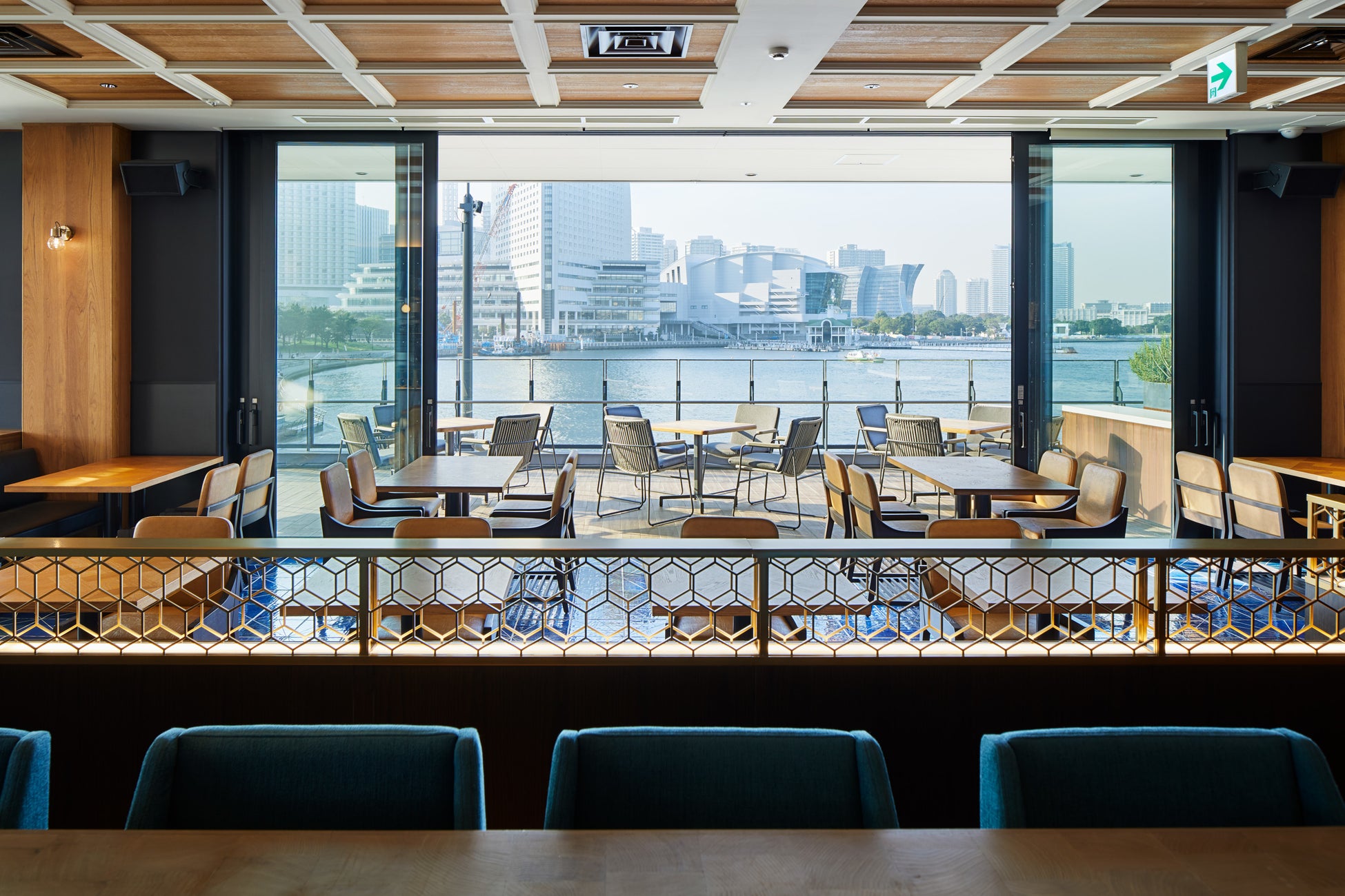 様々なクラフトを実現する、新たな‟大人達の集合場所”。海に囲まれた横浜ハンマーヘッド内の2フロアからなる店内は、開放感のあるメインダイニング、テラスに加えて、レストラン内にビール醸造所・ジン蒸留所・コーヒー焙煎所を併設しています。存在感を放つバーカウンター、店内まで香りを漂わせるコーヒー焙煎所。そしてガラス張りのビール醸造所を見ながら螺旋階段を上ると、ジン蒸留所と落ち着いた雰囲気を醸し出すバーエリア。オープンキッチンを中心に広がるメインダイニングからはみなとみらいの景色が一望でき、まるで船上で食事をしているかのような気分を味わうことができます。