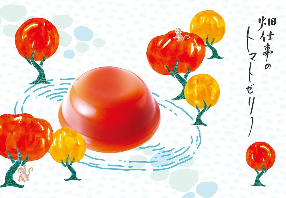 まじめな畑仕事が実らせた、赤い赤いトマトの実。甘酸っぱいコクがたっぷりつまったトマトペーストに林檎をギュッとしぼって、爽やかな美味しさに仕上げました。夏の実りが口いっぱいにとろけるごちそうゼリーです。