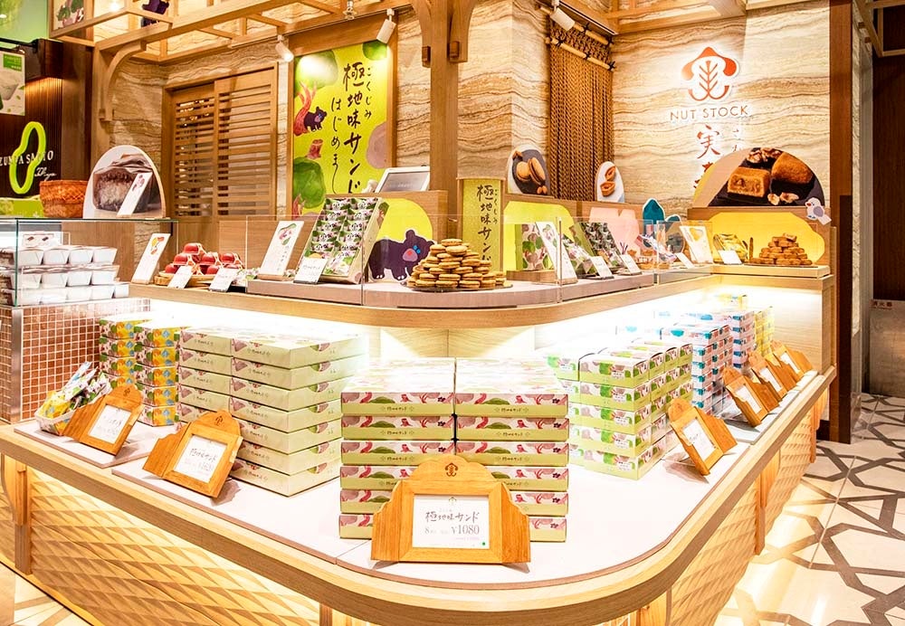 「ナッツストック 実森(さねもり)」のコンセプトは、“豊かな実りをたっぷり盛った、今時(いまどき)の和菓子屋”です。日本は、世界有数のゆたかな森の国。森の恵みの象徴である“木の実”や“果の実”や“豆の実”をふんだんに使い、和と洋の素材や技法を自在にとりいれた一歩先のおいしさをお楽しみいただきます。