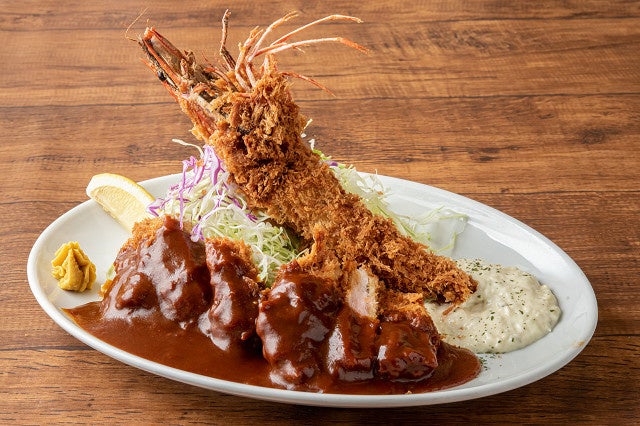 天然有頭海老のエビフライの20㎝を超える大きさは圧巻!