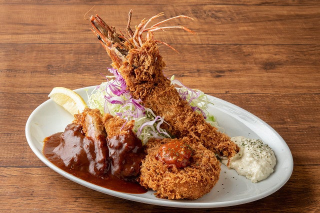 天然有頭海老のエビフライの20㎝を超える大きさは圧巻!