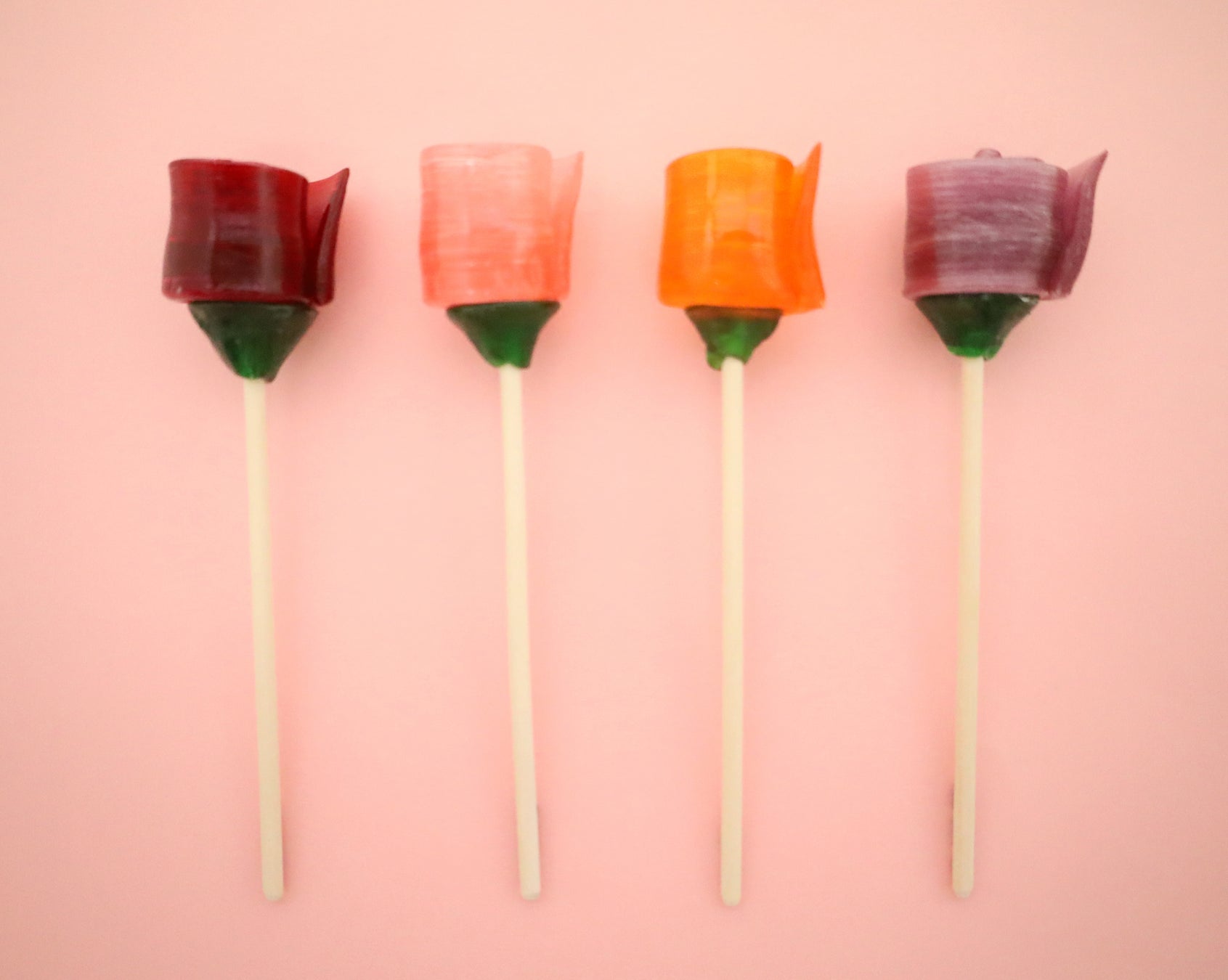 女性ファンの多いフラワーロリポップが、母の日限定で人気の4色(赤、オレンジ、ピンク、紫)で登場。職人手作りのクラフト感ある、お母さんがもらってうれしいキャンディです。