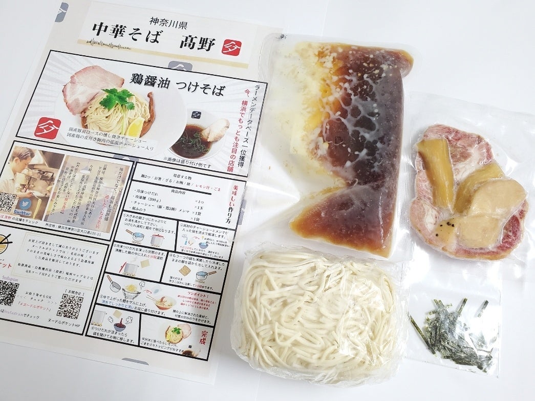 今回、新商品はラーメンデータベースの全国人気ランキングで1位を獲得した、横浜で今もっとも注目の「中華そば髙野」と5ヶ月間の試作を重ねて作り上げた「鶏醤油つけそば」は、店舗では出していない限定商品。