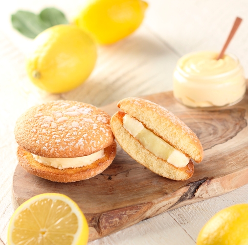 瀬戸内産レモンピールを加えたさっぱりとした檸檬あんとフレッシュバターを使用したクリームの濃厚ながらフルーティーなあんバターナボナです。