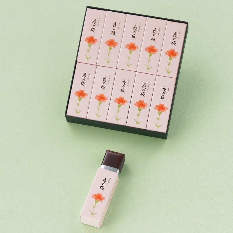 定番の小形羊羹「夜の梅」を母の日パッケージでご用意しました。