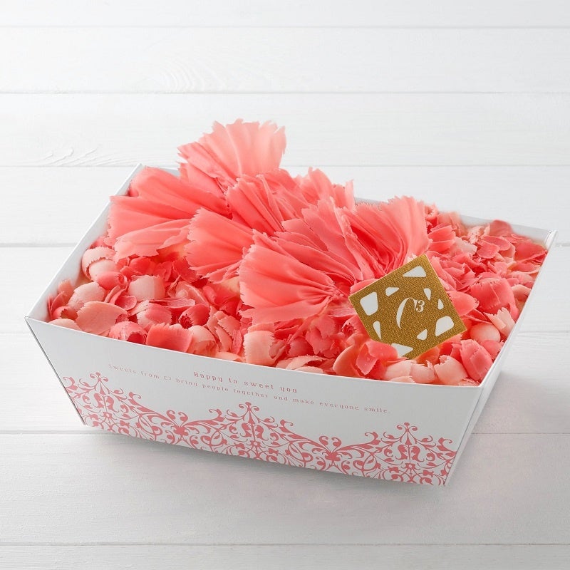 カーネーションに見立てたチョコの飾りが華やかなストロベリーティラミス。 販売:5/6(金)~8(日)