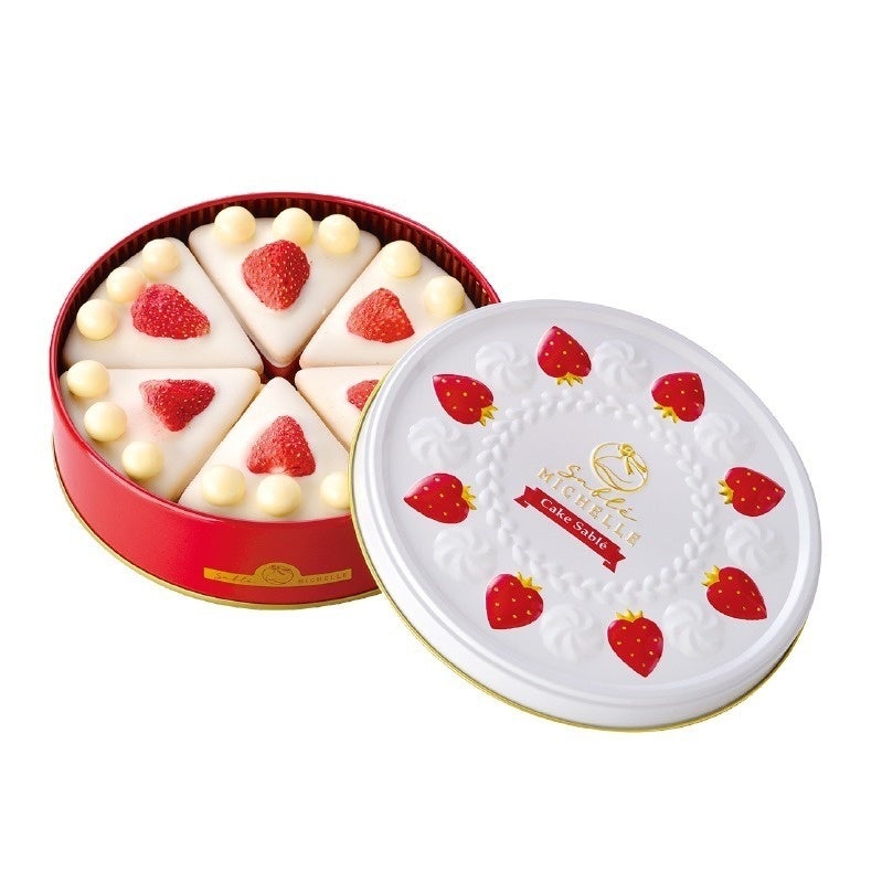 ショートケーキのようなケーキサブレ。フリーズドライの苺とホワイトチョココーティングされたさっくり食感のサブレと、バターと苺の3種入。