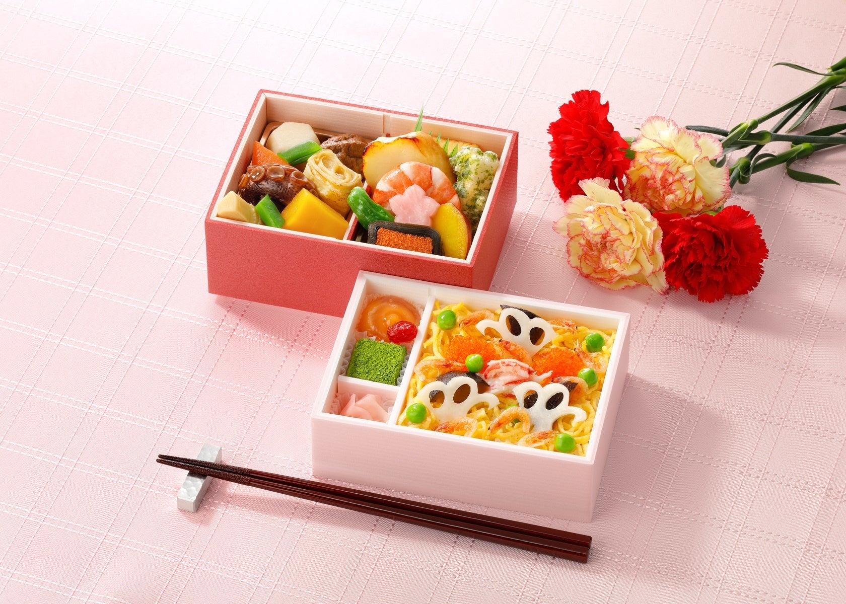お弁当・お惣菜・スイーツなど、約100ブランド・500点のメニューからお好みの品を一括でお届けします。母の日弁当のお届けはご予約にて承りします。(※上記のスイーツは対象外)