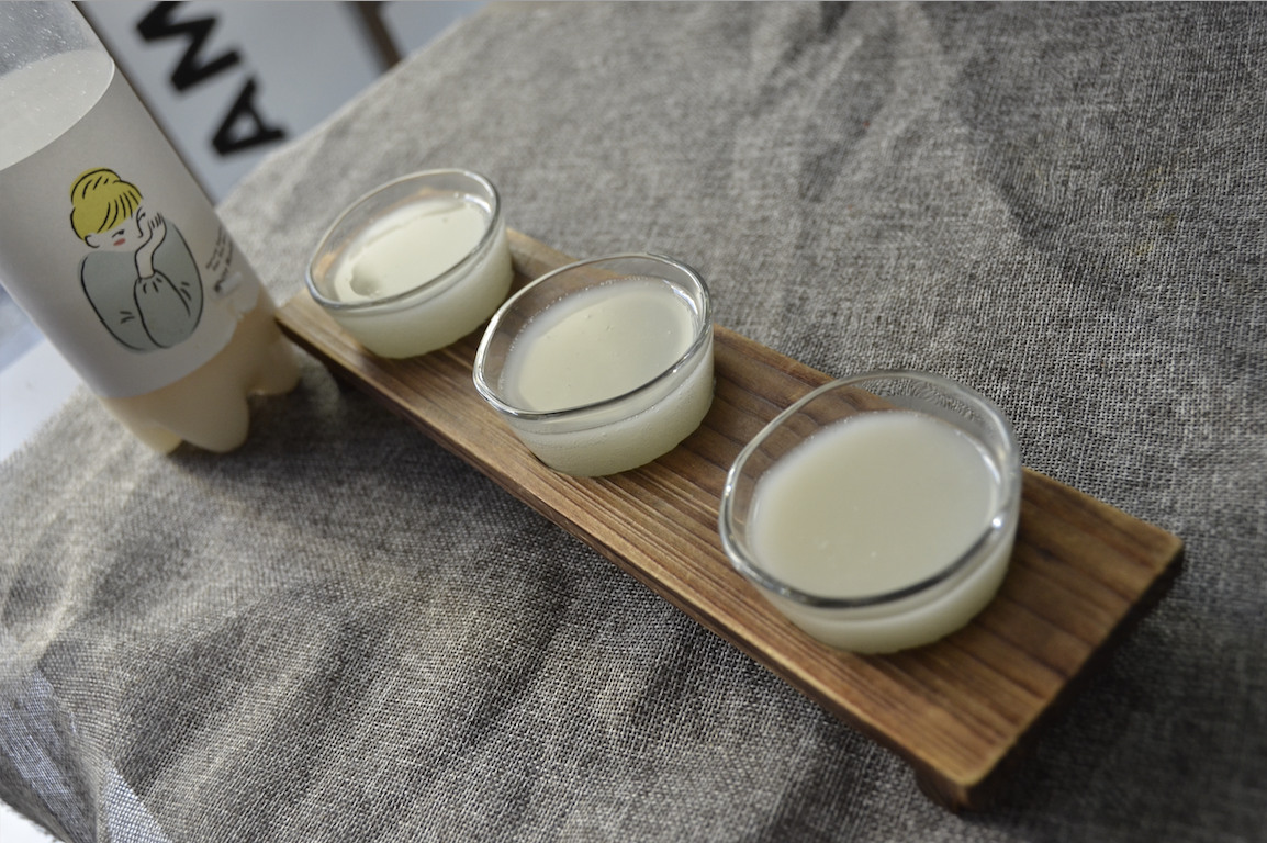 ・ マッコリ3種飲み比べ 価格1080円(税込)