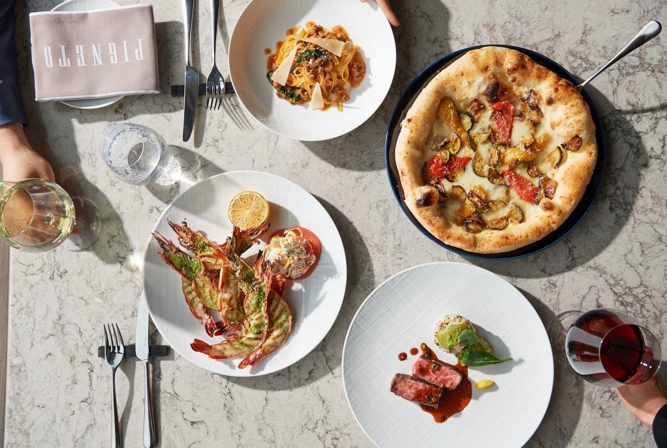 東京のダイナミックな街並み、緑豊かな皇居の森、そして晴れた日には遠くに富士山までを望むルーフトップテラスでは刻々と表情を変える空のもと、リゾートにいるような気分に包まれます。開放感あるテラスで、PIGNETO料理長 木川欣宏が本場のレシピを元に丁寧に作られるパスタや、旬の食材を取り入れたお料理を囲み、「アボンダンツァ(豊かな人生)」な時間をお過ごしください。さらに、ナポリ出身のピッツァ職人 アレッサンドロ・ルカ・デ・レオが小麦粉選びからこだわったハンドトスピッツァメニューも、テラスダイニングのひとときを彩ります。爽やかな風を感じながらのご朝食から、暖かな日差しのもとでのランチ、そして煌めく夜景が彩るディナーまで、都内のホテルでも類まれな天空のテラスで、新たなダイニング体験を。