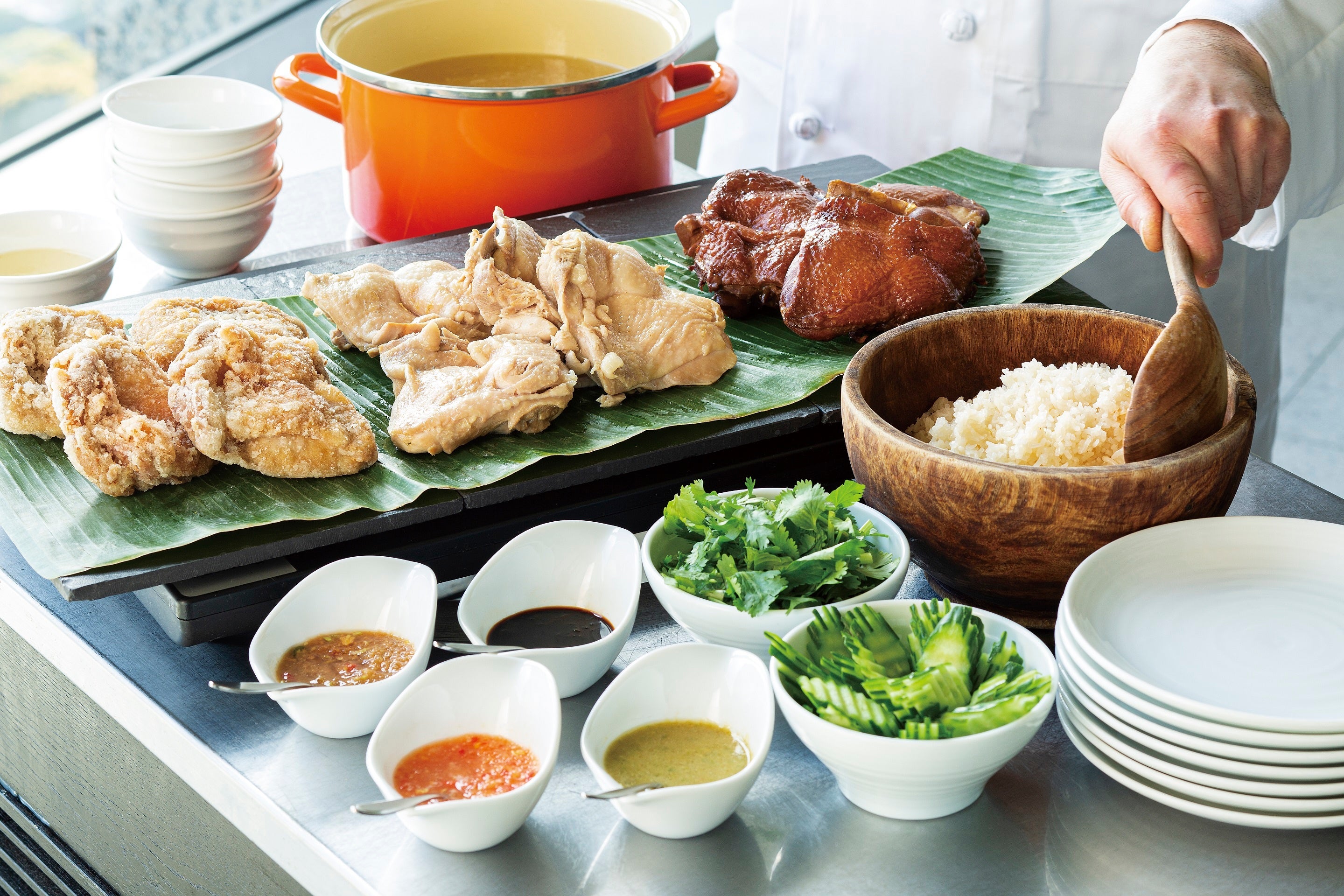 「タイ産米どりのカオマンガイフェア」では、「お米」を食べて育ち、柔らかくしっとりした食感と臭みがないのが特徴のタイ産ブランドミート「米どり」*を使用し、「茹で」「揚げ」「タイの醤油煮」3種の調理法から選べる鶏肉&4種のソースをお好きな組み合わせで、鶏を茹でたスープで炊いたジャスミンライスと一緒にお召し上がりいただけます。