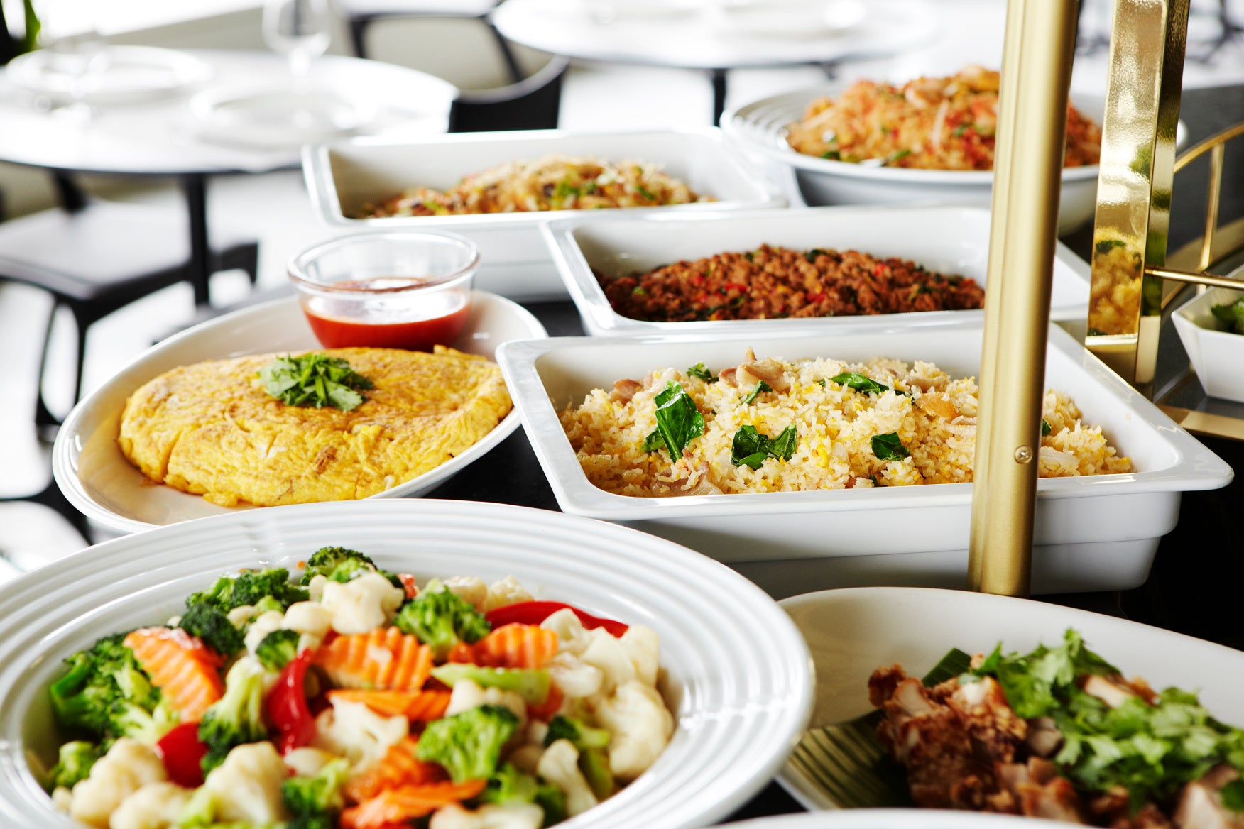 マンゴツリー東京では、ランチタイムに、ヤムウンセンやグリーンカレー、パッタイなどの本格タイ料理を⼼ゆくまで、丸の内の眺望とともに満喫できるランチブッフェを実施しており、開業以来ご好評いただいています。