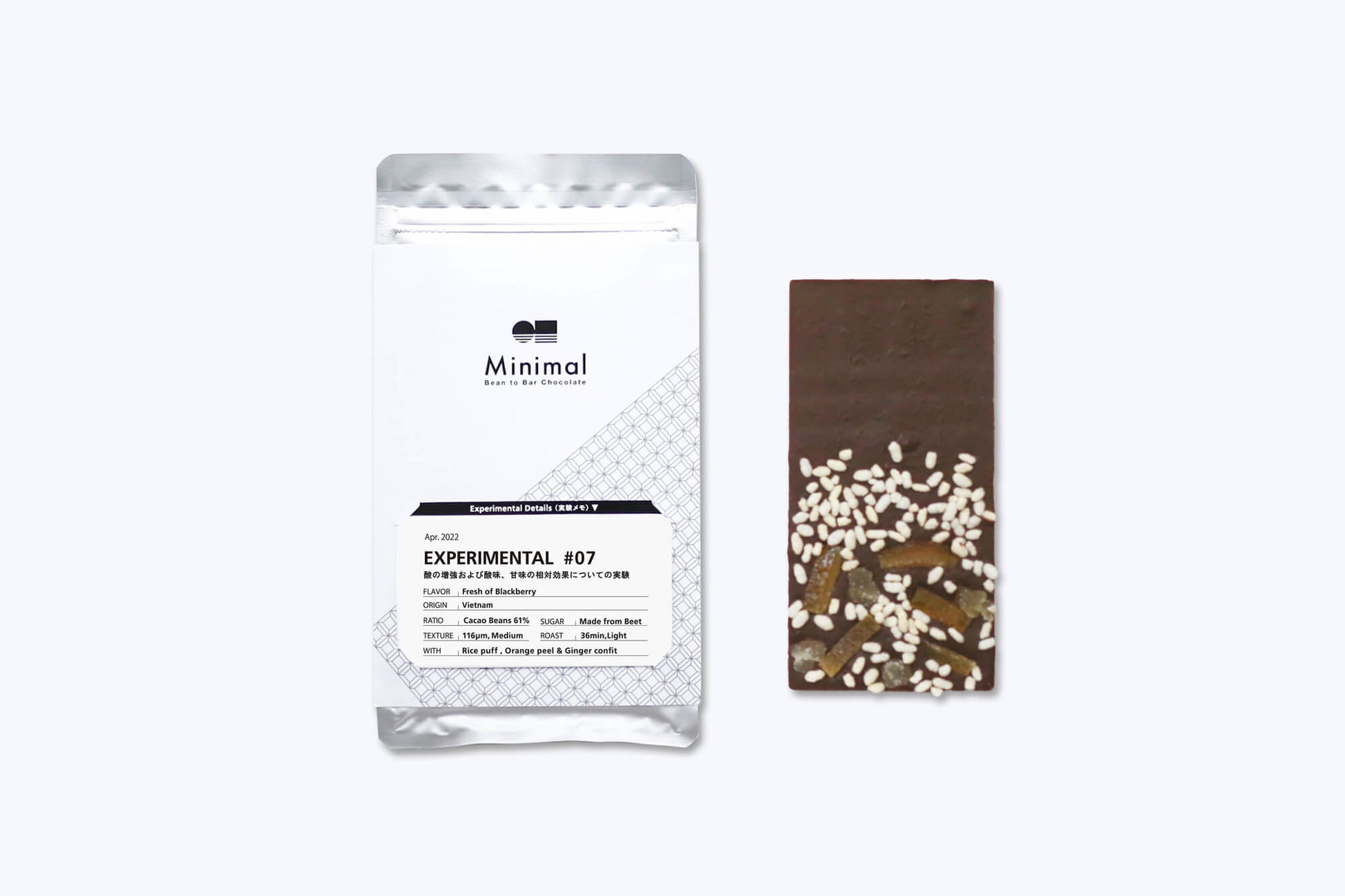 Minimalはカカオのプロフェッショナルとして、通常カカオ豆と砂糖のみで板チョコレートをお造りしています。「Experimental」シリーズは「板チョコレートの価値の追求」を目的に通常とは異なる発想と手法でカカオの可能性を広げる、実験・挑戦です。