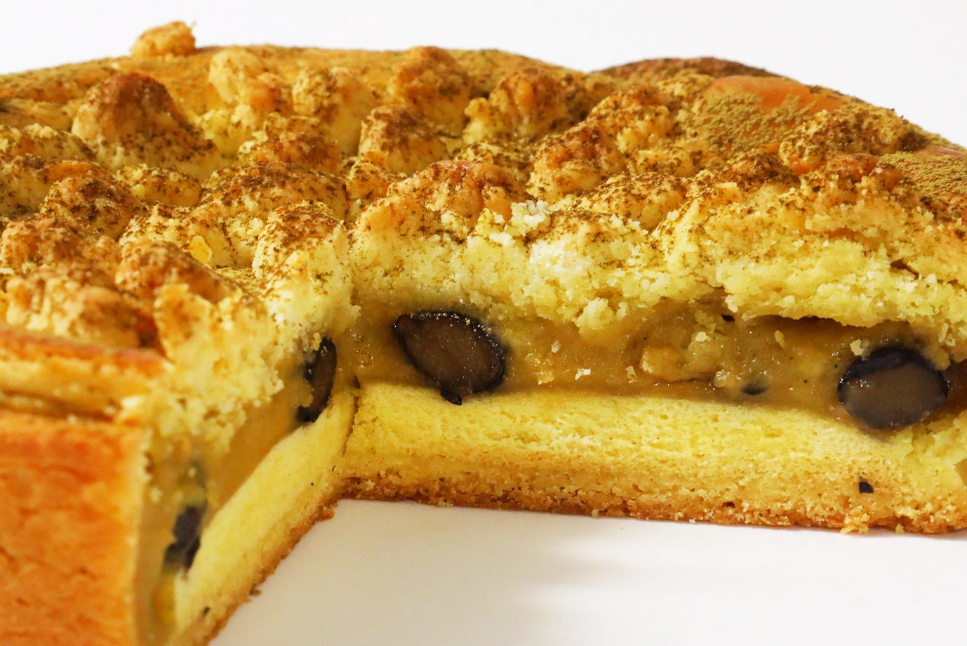 中にはもちっとした食感の黒豆が入っており、和テイストなガトーバスクに仕上げています。こんがりと焼き上げることでガレット生地がサクサクになり、噛む度にバターがじゅわっと染み出て食欲をそそります。