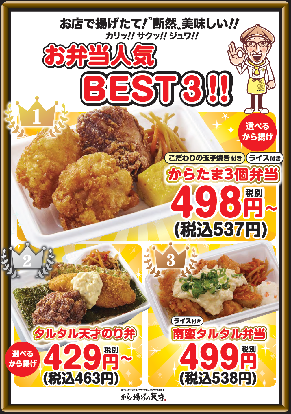 からたま3個弁当 498円(税込537円~)