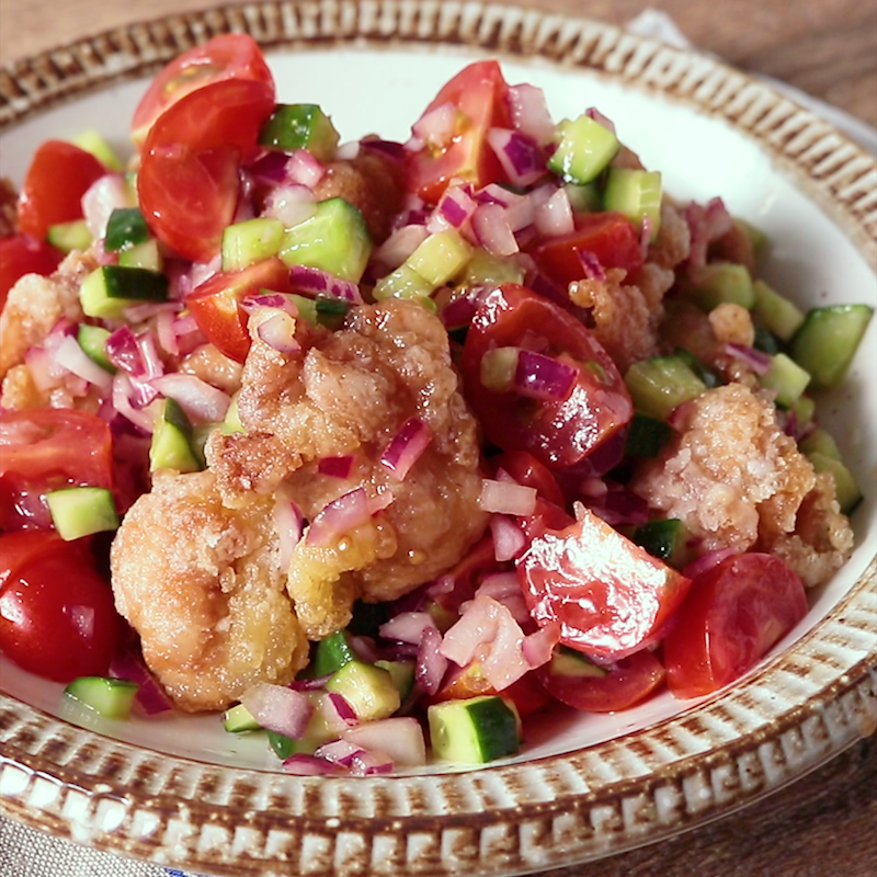 ●さっぱり味変!鶏の唐揚げにトマトサルサ