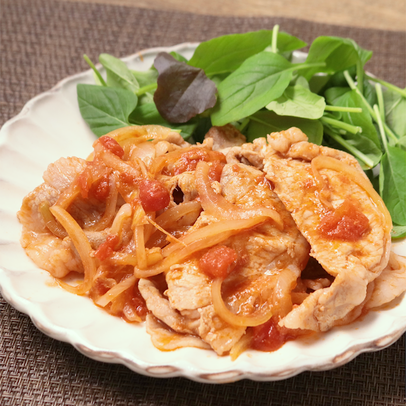 いつもの「豚肉の生姜焼き」にトマトを加えるだけで、新鮮な一品に変わります。