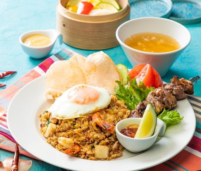- 5月限定ランチメニューはインドネシアの国民料理『ナシゴレンとラムサテのエスニック定食』