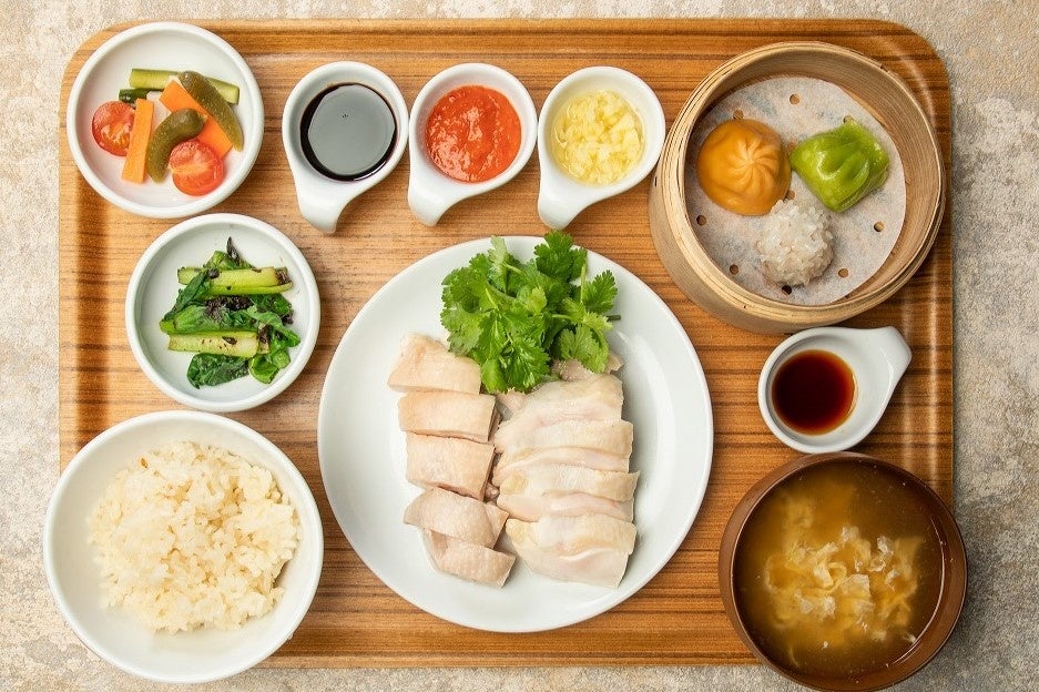 5月限定メニューの他におすすめしたいメニューが日替わり定食「シンガポール海南鶏飯」。塩水で驚くほど柔らかに仕上げたチキンは、さっぱりのむね肉と甘みのあるもも肉2種の違いを楽しめます。チキンのだしで炊き上げたライスと3種のソースで自分好みの味付けにカスタマイズしながら食べられるのも魅力。銀座で本場シンガポールの味わいをお楽しみいただけます。是非一度ご賞味ください。