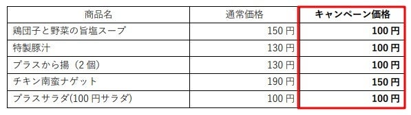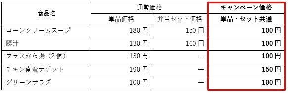※『プラスサラダ(100円サラダ)』・『グリーンサラダ』は、キャンペーン終了後も100円で販売いたします