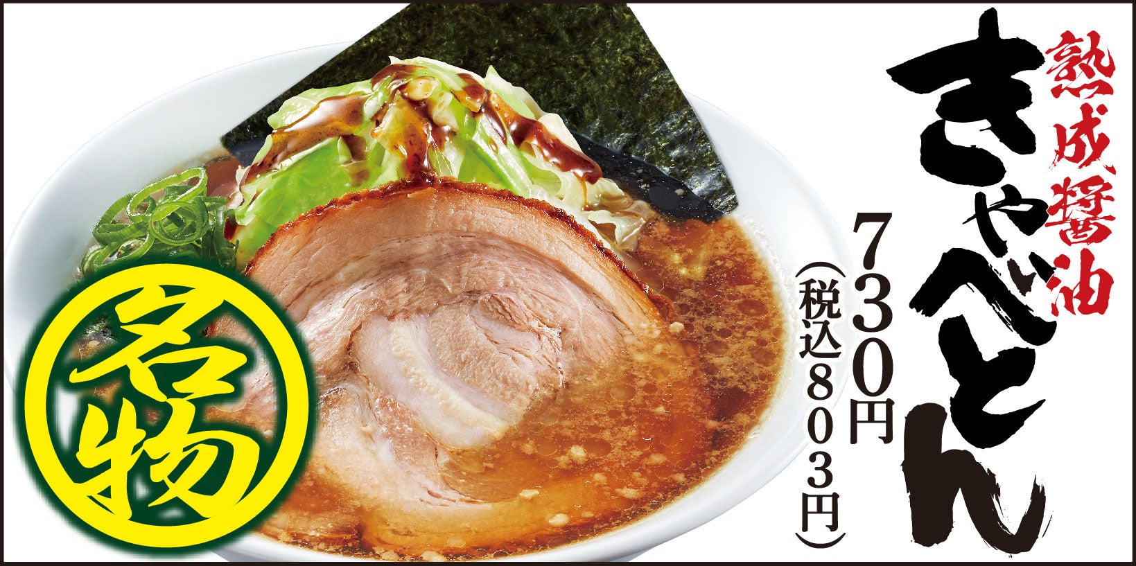 小型店舗の特性を生かした、本格派の地域密着型ラーメン店です。看板商品は、熱々パリパリ食感のきゃべつ、大判チャーシュー、半乳化させた熟成醤油スープが自慢の「熟成醤油 きゃべとん」(730円(税込788円))。香り高い熟成醤油スープは、特製細打ち麺と熱々パリパリきゃべつとの相性抜群です。使用食材に細部までこだわり抜いた自慢の一杯は、ラーメン好きの方を唸らせます。
