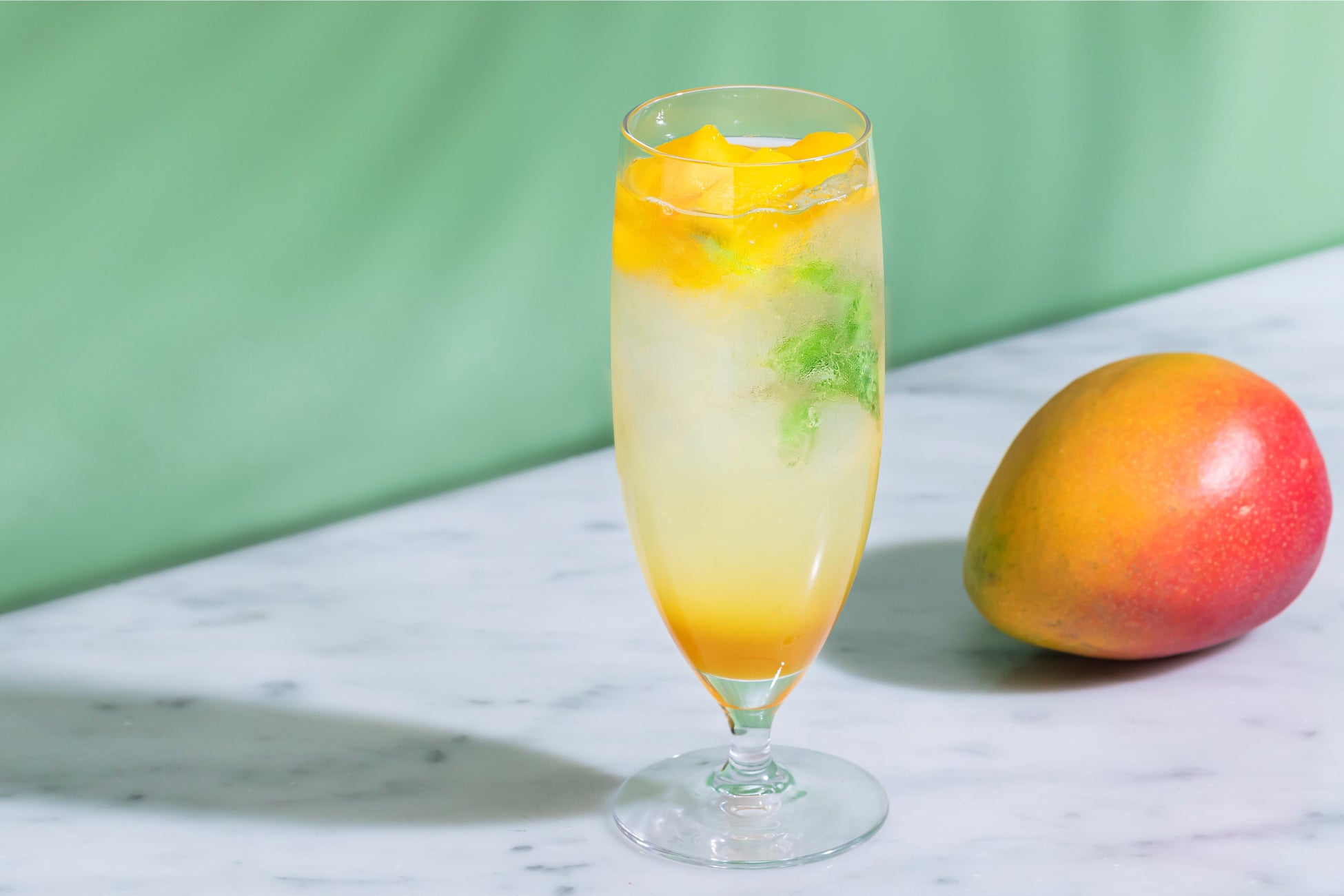 濃厚なパッションフルーツシロップに炭酸を合わせた、マンゴーとミントが爽やかに香るドリンクです。