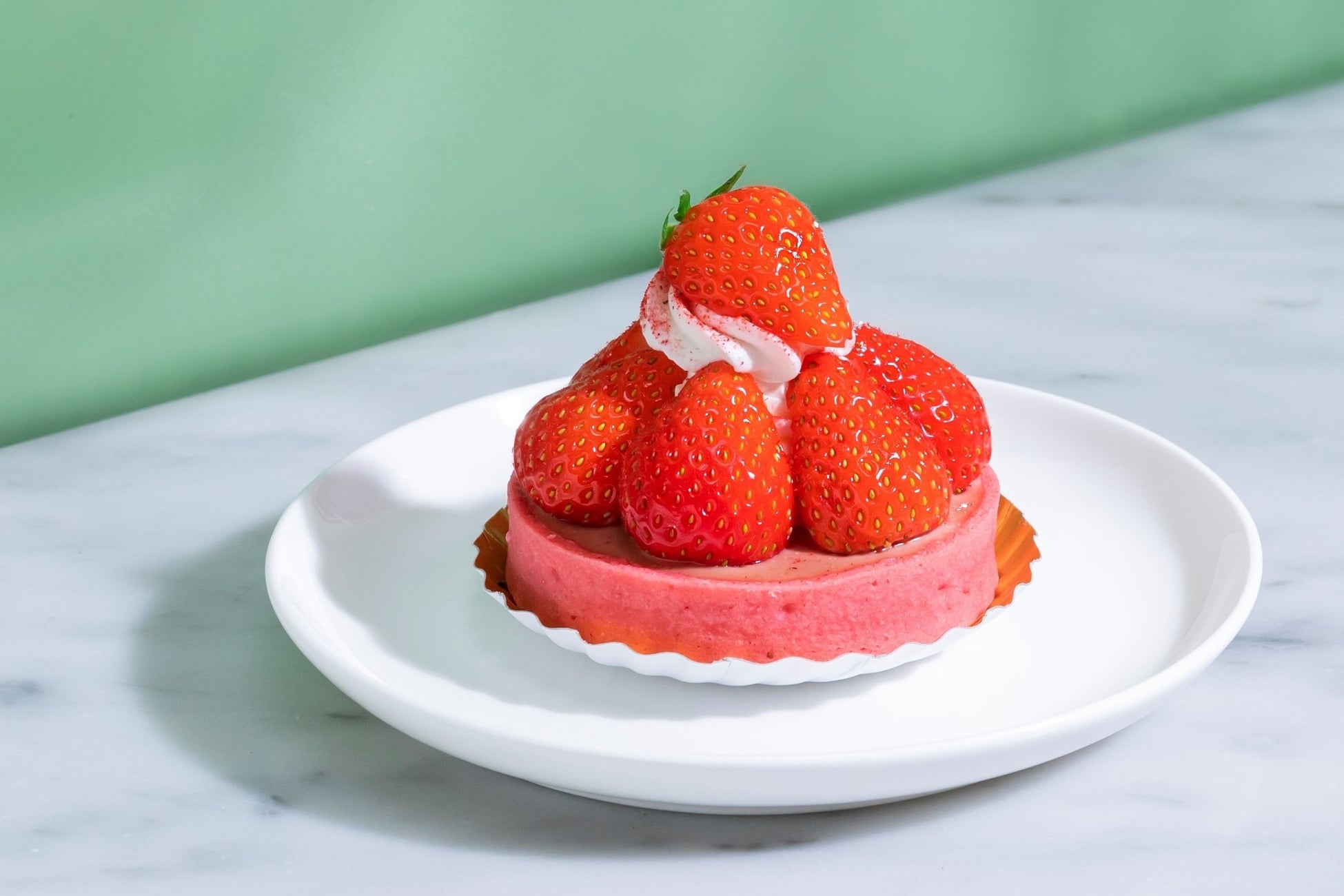 苺のムースの上にたくさんの苺を飾ったさくさくのタルトです。