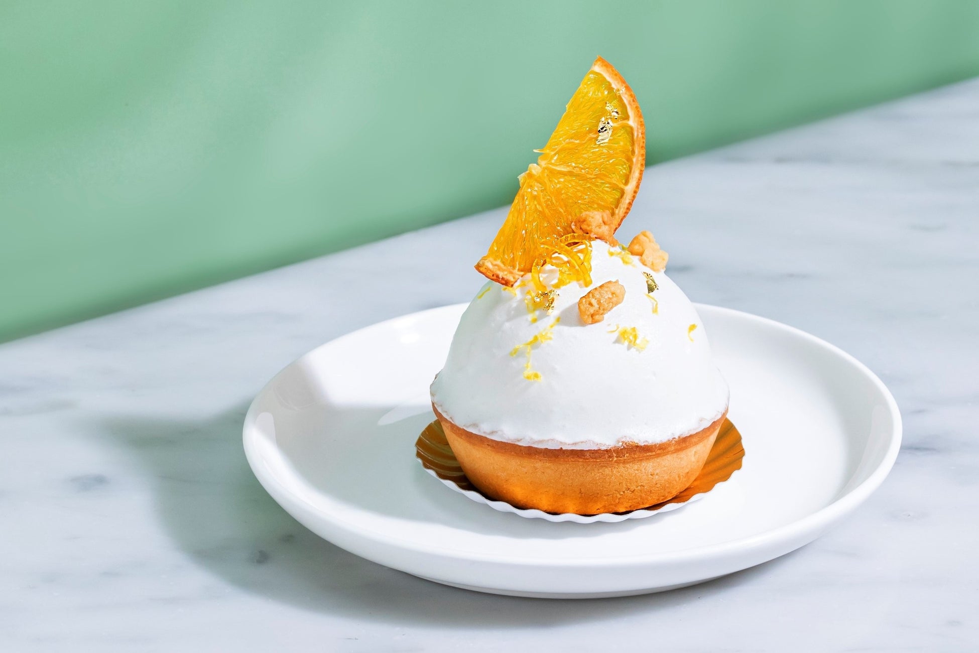 バニラを使用したクリームにたっぷりのオレンジとエルダーフラワーのジュレで初夏を彩るショートケーキです。