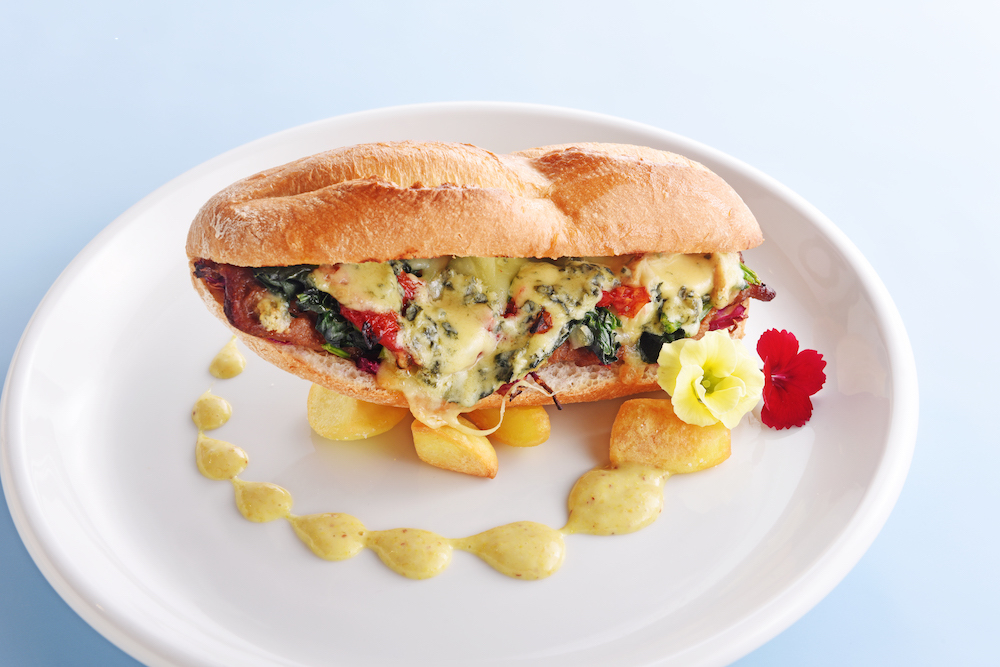 100%プラントベースで低脂質、コレステロールゼロの「NEXT ツナ」とグリーンカール、卵、アーリーレッド使用した、ボリューミーでお腹もいっぱいになる、ニース風のフォカッチャサンド「ニソワーズフォカッチャ」〔単品:940円(税込)〕や、本物の牛カルビに比べて、タンパク質が2倍以上、脂質は10分の1程度、食感は肉のように食べ応えのある「NEXTカルビ」と季節の野菜をホットサンドした、「NEXTカルビゴルゴンゾーラ」〔単品:920円(税込)〕などを展開します。