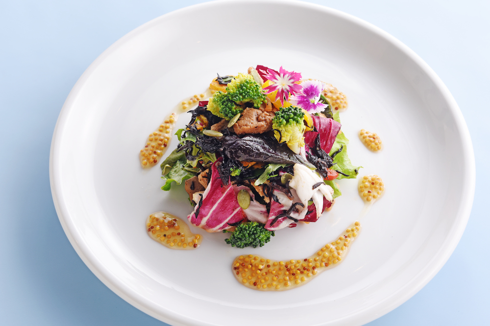 第一弾は、ネクストミーツの4つの植物肉「NEXTツナ」「NEXTカルビ」「NEXT牛丼」「NEXTハラミ」を使用し、FLOWERSのシェフが、サンドイッチ、ロール、サラダを開発。エディブルフラワー(食べられる花)と組み合わせた、見た目もお腹も満足できる、ヘルシーなメニューです。