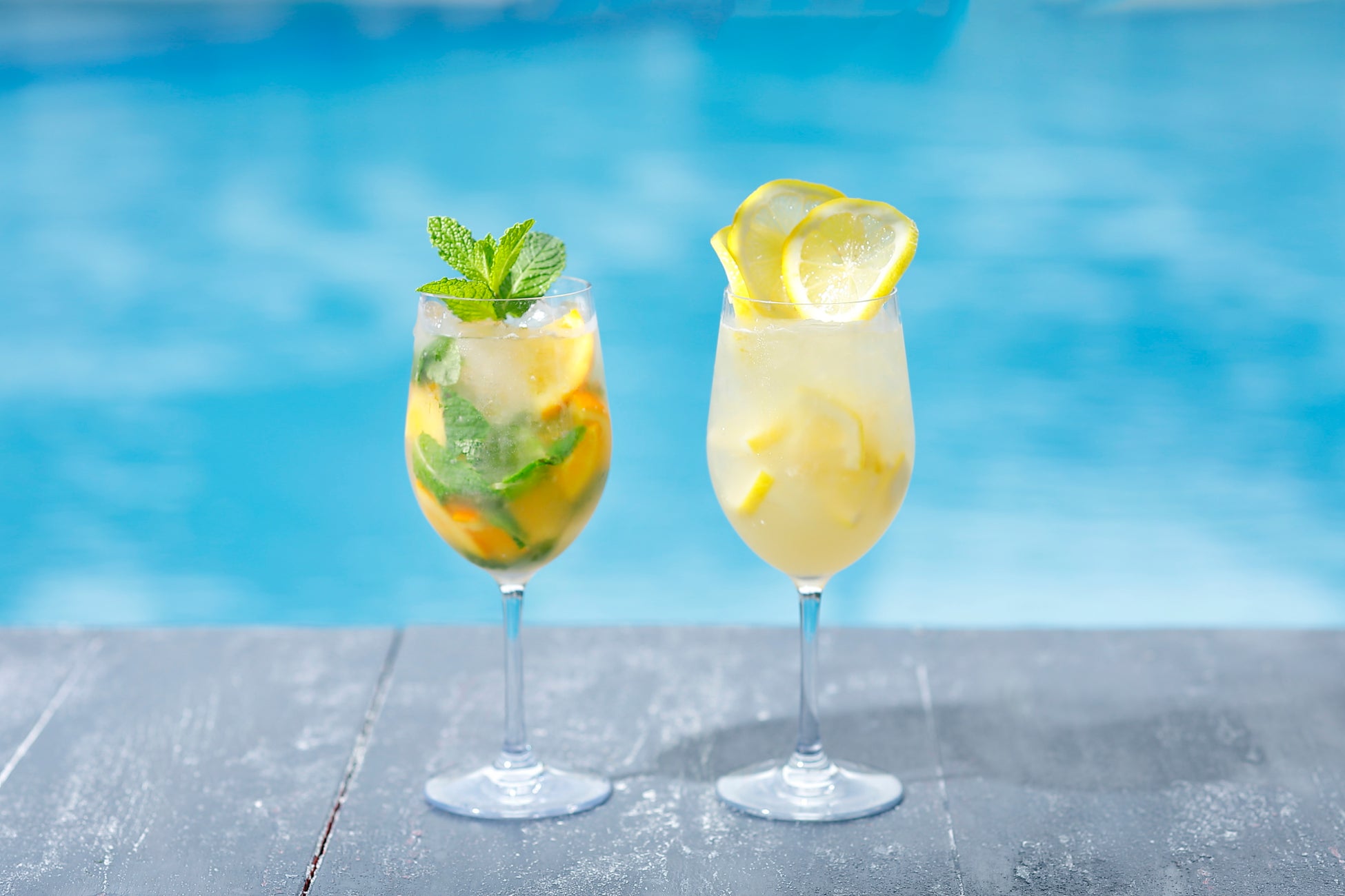 2019年英国ディアジオ社主催のバーテンダー・コンペティション「WORLD CLASS」にて部門優勝を果たしたバー・カプリの吉田宏樹 考案のOUTRIGGER限定のカクテルが2種類新登場。『桃香るフルーティーモヒート』(写真左)は、オレンジとピーチのフレーバーで、プールらしくトロピカルに仕上げたモヒート。『檸檬さわやかラムレモンサワー』(写真右)は、熟成したラムとレモン1/4個をふんだんに使ったこだわりのレモンサワーです。運転をされる方や未成年の方にもうれしい、ノンアルコールでのご用意もございます。また、ドリンクはプールサイドでもお召し上がりいただけますので、緑に囲まれた自然豊かなプールサイドで、日光浴とともに、ごゆっくりとお愉しみください。