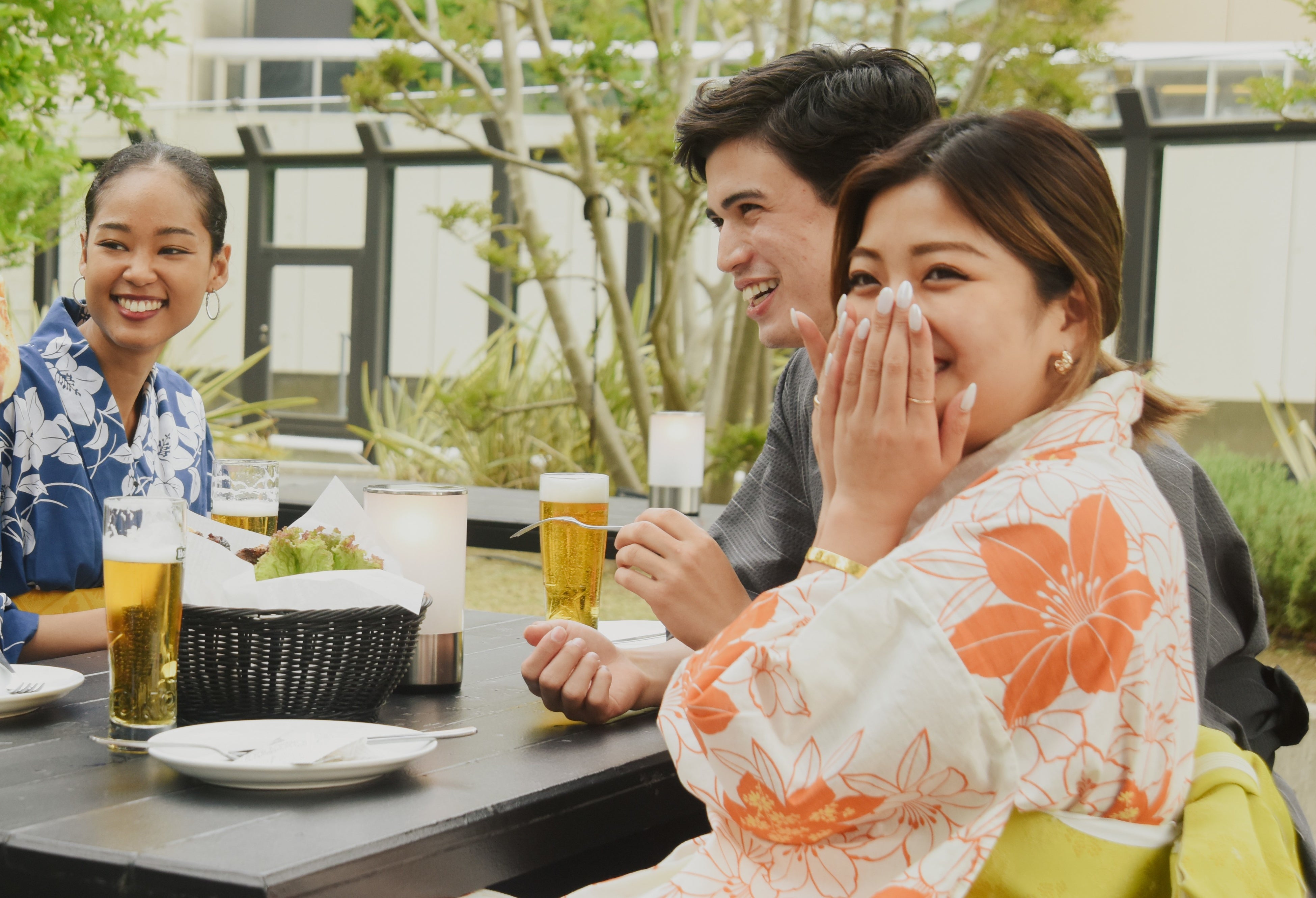 また、浴衣でお越しのお客様や女性同士のお客様にはスペシャルな特典もご用意しております。ハイクオリティなお料理に良質なサービスで少し贅沢なビアガーデンをお楽しみください。