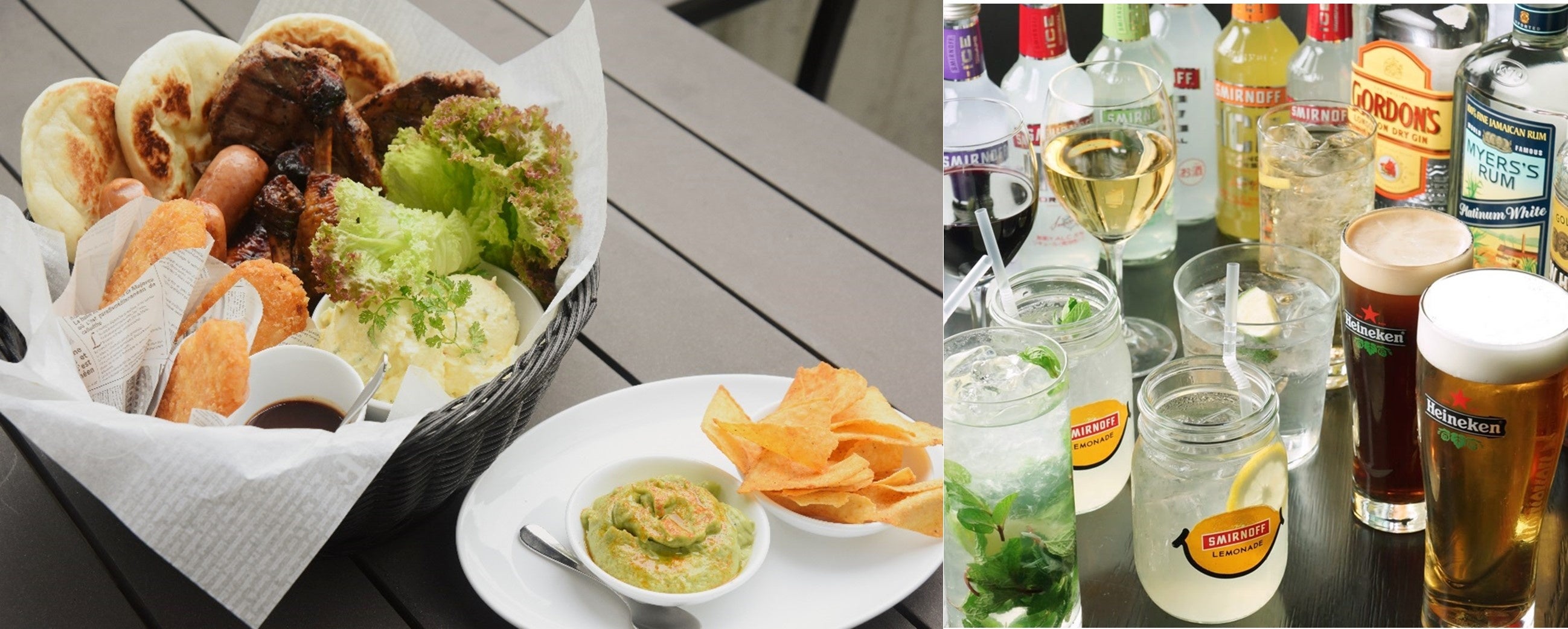今年のフードテーマは“American BBQ“。「オーストラリア産グラスフェッドビーフ サーロインステーキのチャーグリル」や「ブラジルソーセージ」などワイルドな食感と濃厚な味わいが楽しめるお料理がセットになっています。また、アラカルトでは「ニュージーランド産 ダブルラムチョップのチャーグリル」などグリル料理レストラン「Cosmopolitan」ならではのお料理の数々。さらに、ビールやワイン、カクテルなど50全種類以上のドリンクが飲み放題!