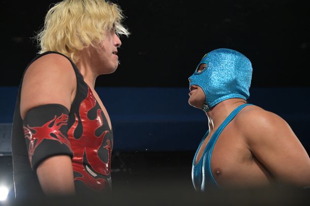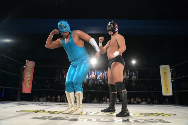 宿敵納谷選手と睨み合うシシャモパワー 写真提供:DDT