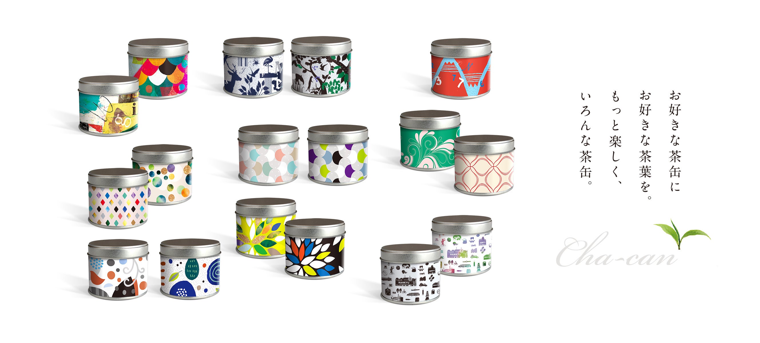 お好きなデザインを選べる茶缶の種類は17種類。日々の暮らしの中にも自然に溶け込むよう、少し小さめに設計・デザインされた、かわいらしい手の平サイズの茶缶です。