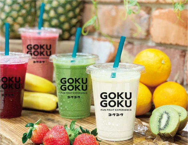 ゴクゴクのメインメニューは、無添加でカラダにやさしい、フルーツたっぷりのスムージーです。濃厚スムージーに、フルーツ果肉が層になり、とろ~り、さらさら、つるん。ひとくちごとに、いろいろな食感があらわれます。
