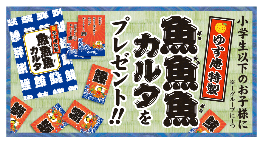 ※「ゆず庵特製 魚魚魚(ぎょぎょぎょ)カルタ」はなくなり次第終了となります