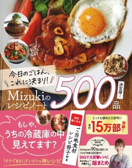 2021年9月の発売から、11月に10万部を突破し、2022年4月には20万部を達成した『Mizukiのレシピノート』。MizukiさんのInstagramフォロワー数は発売当時から約20万人増え、97万人を超えています(2022年4月現在)。