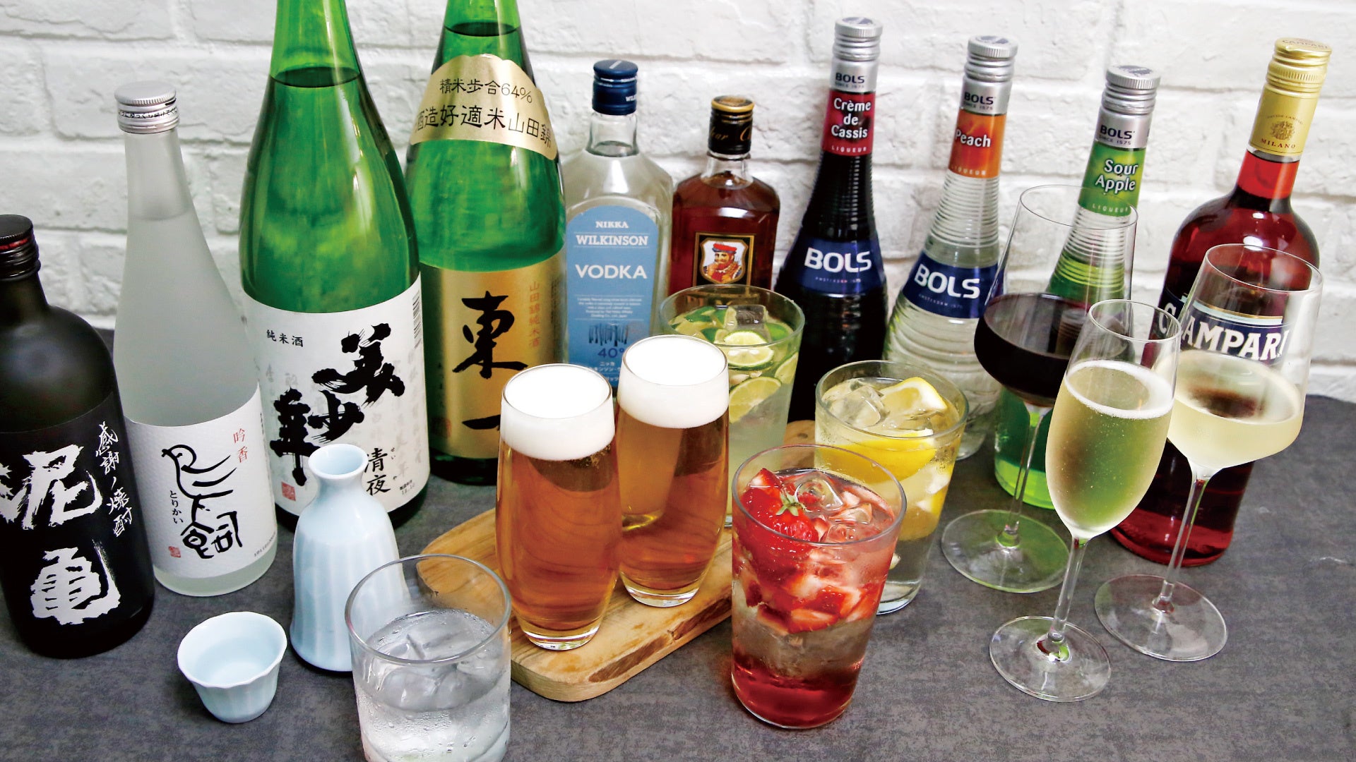 ビールはもちろん、ハイボールやカクテル各種、ワイン、焼酎に日本酒などのお酒と